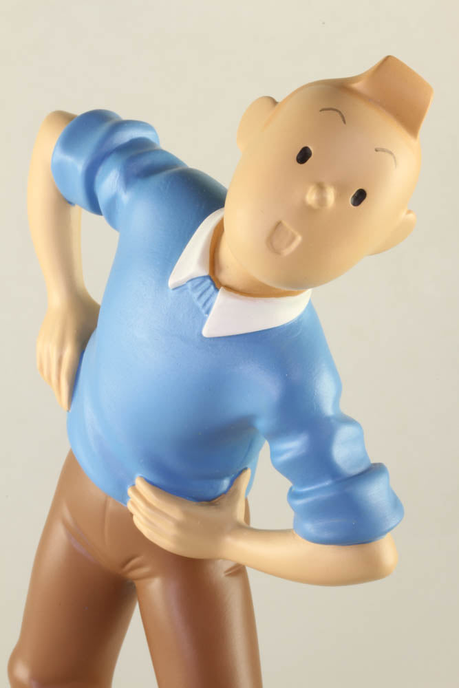 With rolled up sleeves, Tintin exercises with Snowy looking on. This resin hand painted figure was made in 2004 by Leblon-Delienne. Figure comes in original blue Moulinsart box with numbered certificate. 17.7cm (7") tall, 14.6cm (5.75") wide and 7cm (2.75")