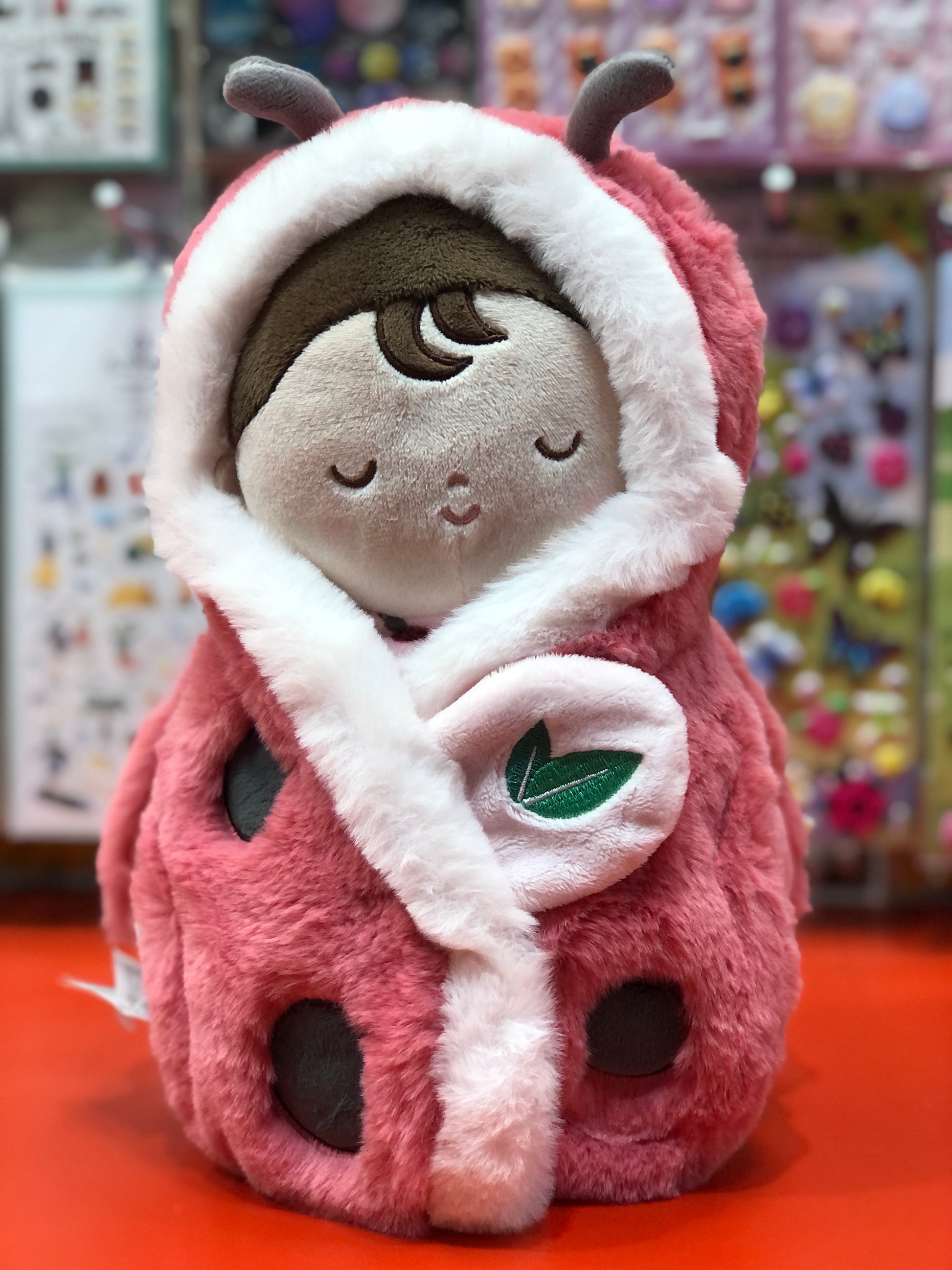 Bring some buggy love into Baby’s life with our Baby Ladybug Hug! With its charming design and comforting features, this interactive soft toy will quickly become Baby’s favorite cuddle buddy. Gently swaddle the Baby doll in the soft, plush blanket, secured by a closure that features an embroidered ladybug print.