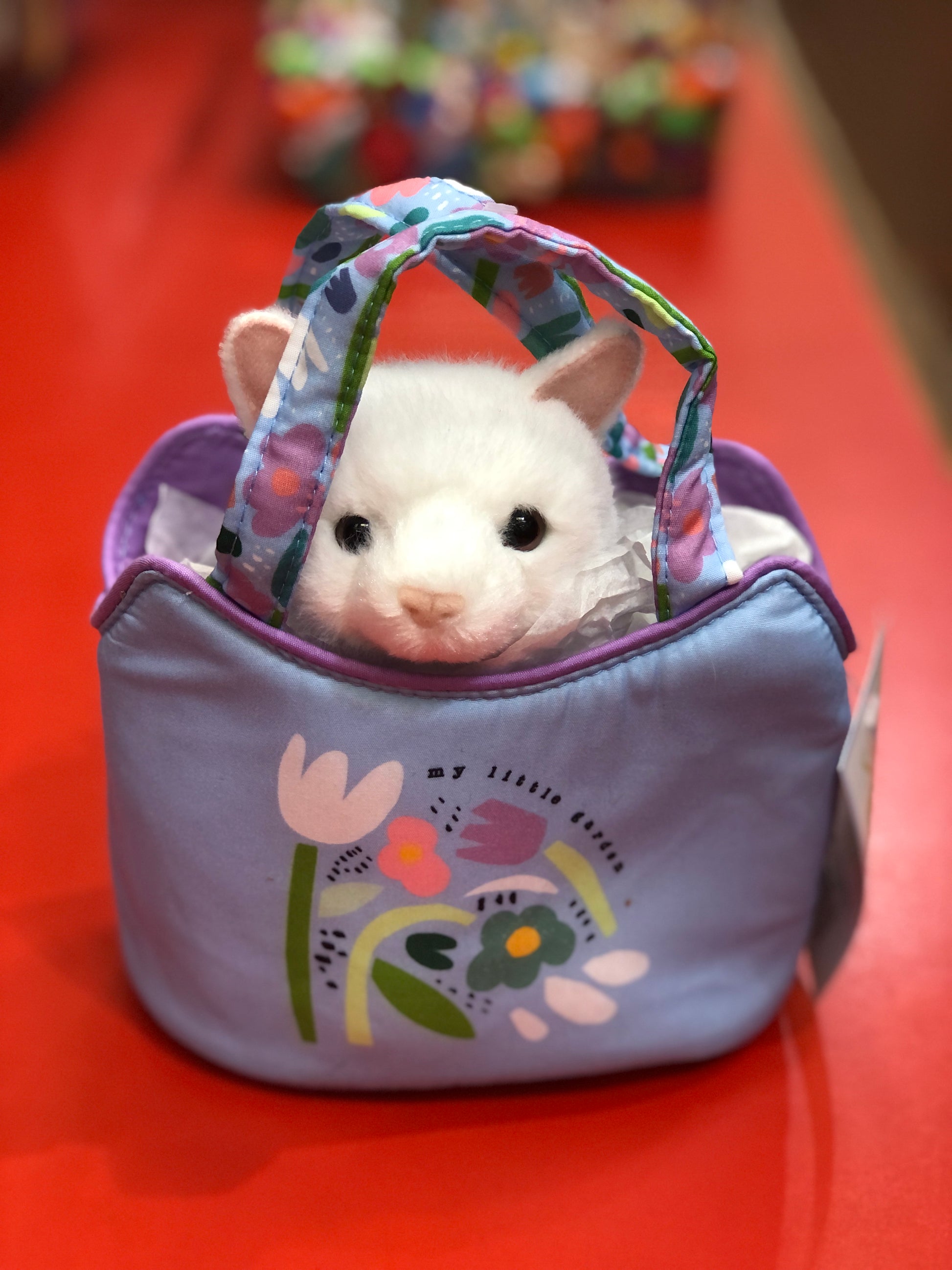 A garden of blossoms is always best shared with a friend, and when you take the handles of our My Little Garden Sassy Pet Sak with its white plush Cat, you can bring both along with you wherever you go!